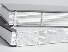 Die Vielfalt der Materialien ist nahezu unbegrenzt. Leder, Pergament, Gewebe und Papier, Fadenheftung, Fächerklebebindung, Prägen mit Lettern oder Prägestempel.